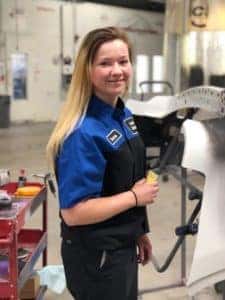 Tessa Baker, a 2018 graduate of Cuyahoga Falls and completer of the Collision Repair Program, is one of a few women in the field. She was the only female in her class and has faced challenges from male coworkers, but “I’m still going for it,” she explains.
